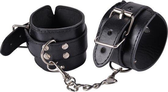 Kajdanki czarne skórzane z łańcuszkiem bdsm sex