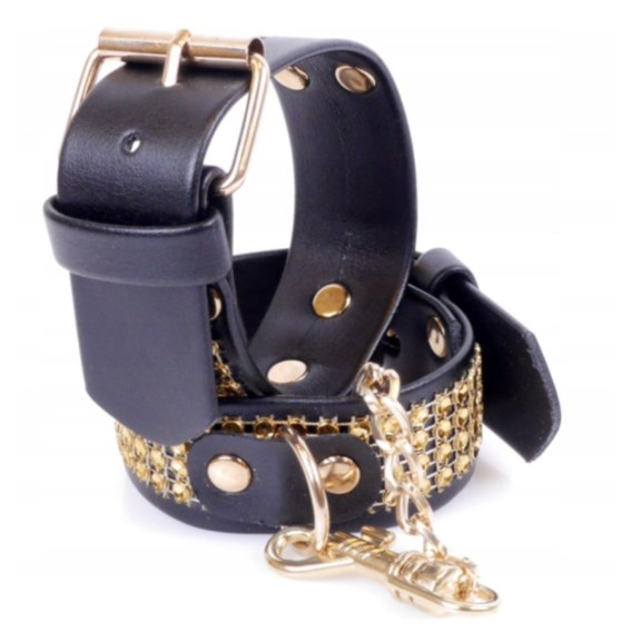 Kajdanki skóra metal sex bdsm złote kryształki