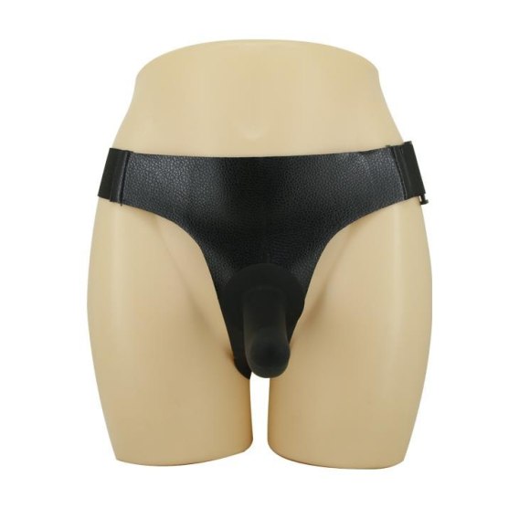 Majtki na szelkach z zakrzywionym czarnym dildo