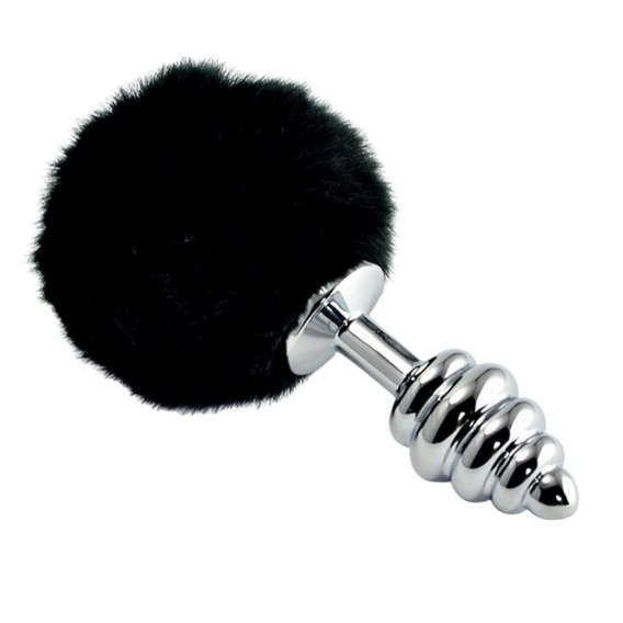 Spiralna srebrna wtyczka+ czarny pompon Pompon o średnicy 8 cm. Zapakowany w przezroczystą torbę OPP z kodem kreskowym Materiał: stop cynku/sztuczne futro. Bez niklu