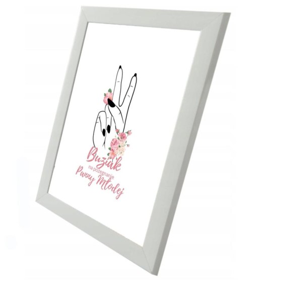 Pamiątkowy czarny plakat "Buziaki na pożegnanie Panny Młodej" w ramce.