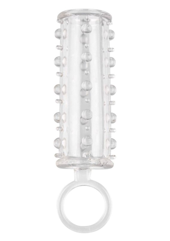 The Sensation Enhancer is a super tight, open-end extension sleeve with a sensually beaded shaft. The super sized enhancer wraps tight around your pleasure tool to increase girth, length and pleasure. While you thrill your lover with increased girth and stimulating beads, the fulfilling enhancer's powerful erection support and open end design results in explosive results for both of you. The erotic enhancer sleeve's ultra stretchy material and spacious chamber is made to fit even the biggest man. The textured chamber and built-in scrotum strap provide increase stimulation and powerful support. Wrap your pleasure tool in this super stretchy sleeve to easily increase stamina, stimulation and orgasmic pleasure. The flexible enhancer is made from a hygienically superior TPE. This body safe material is unscented and phthalate free to keep your most sensitive spots happy and healthy.