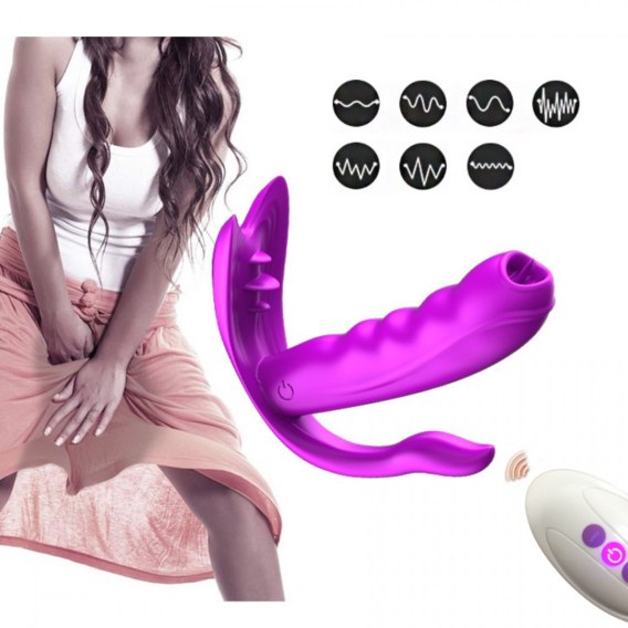 Produktem tym można również sterować za pomocą pilota. Najpierw włącz masażer, a następnie krótko naciśnij przycisk włącznika, aby włączyć pilota, kolejne krótkie naciśnięcie przycisku z ikonką języczka, przenosi masażer do pierwszego trybu wibracji, każde krótkie naciśnięcie przesuwa masażer przez 7 trybów wibracji.